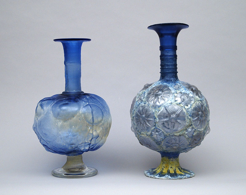 , mold-blown glass(left) plastic from discarded bottles, hot glue, acrylic polymer, apoxie sculpt, glass frit (right)16.5"x8"x8.5" and 18"x9"x9" 2015